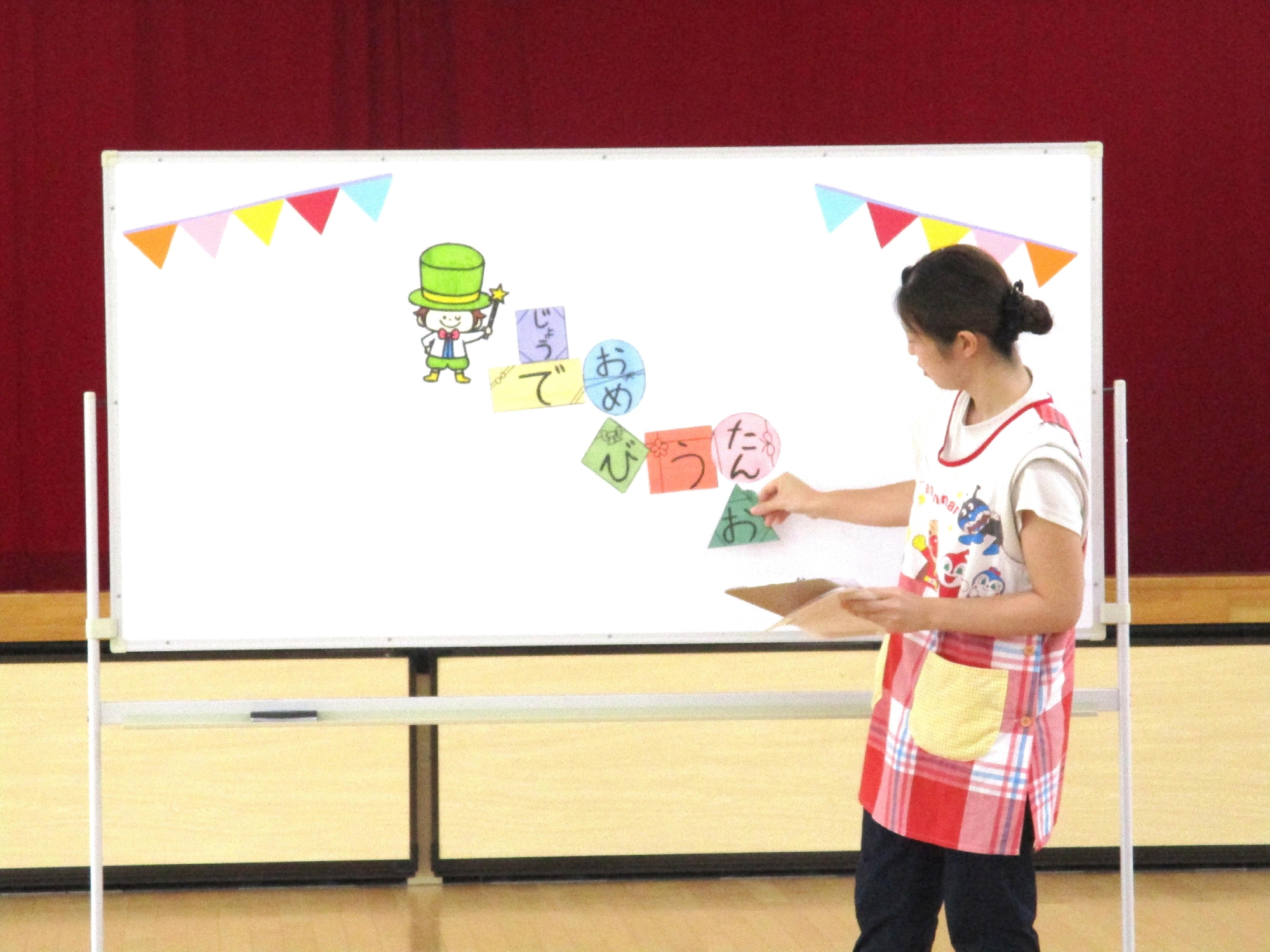 誕生会では先生から『言葉遊び』の出し物があり子どもたちはすごく楽しそうでした🌞