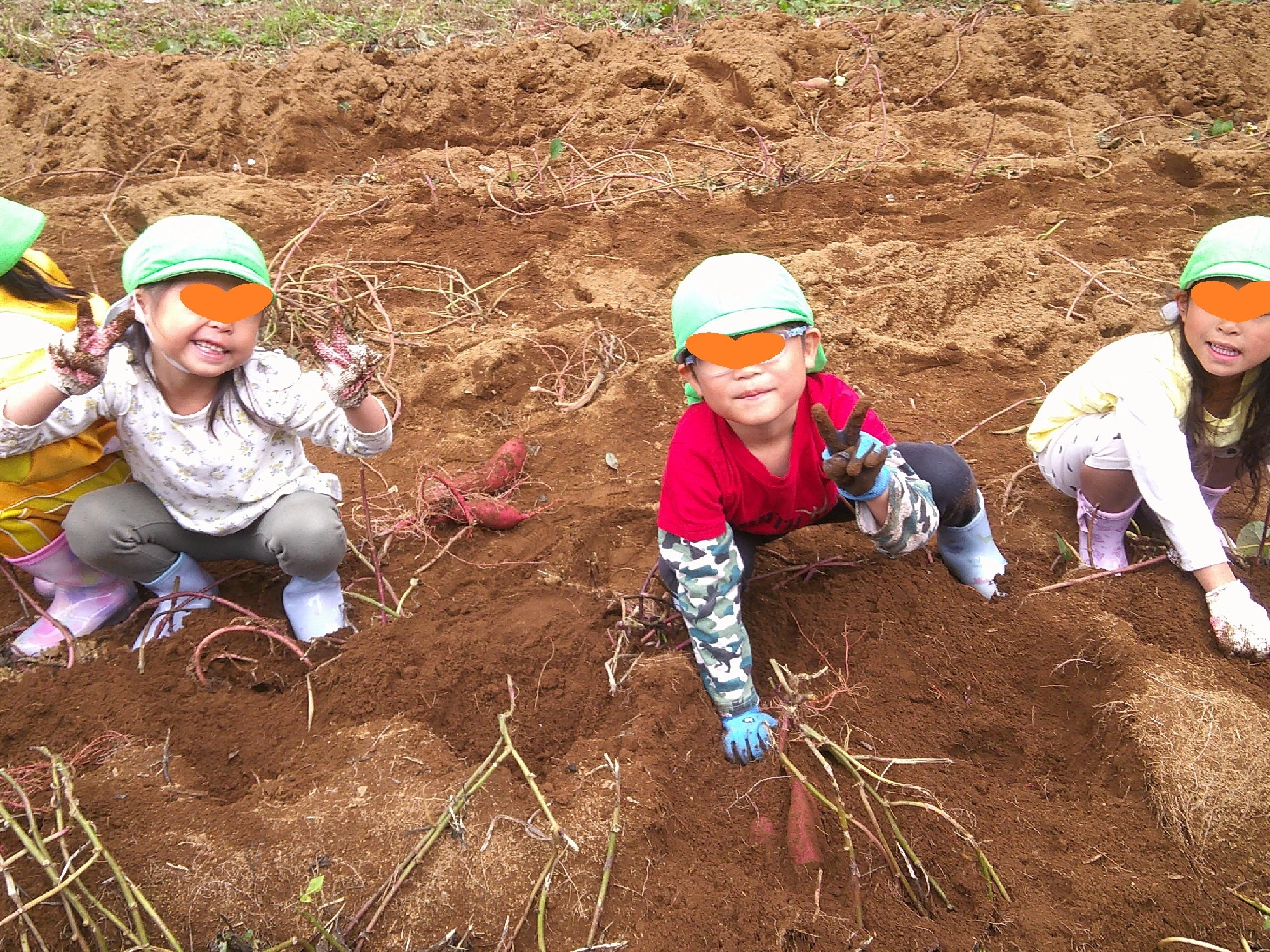 次々に出てくるサツマイモに大興奮の子どもたち。