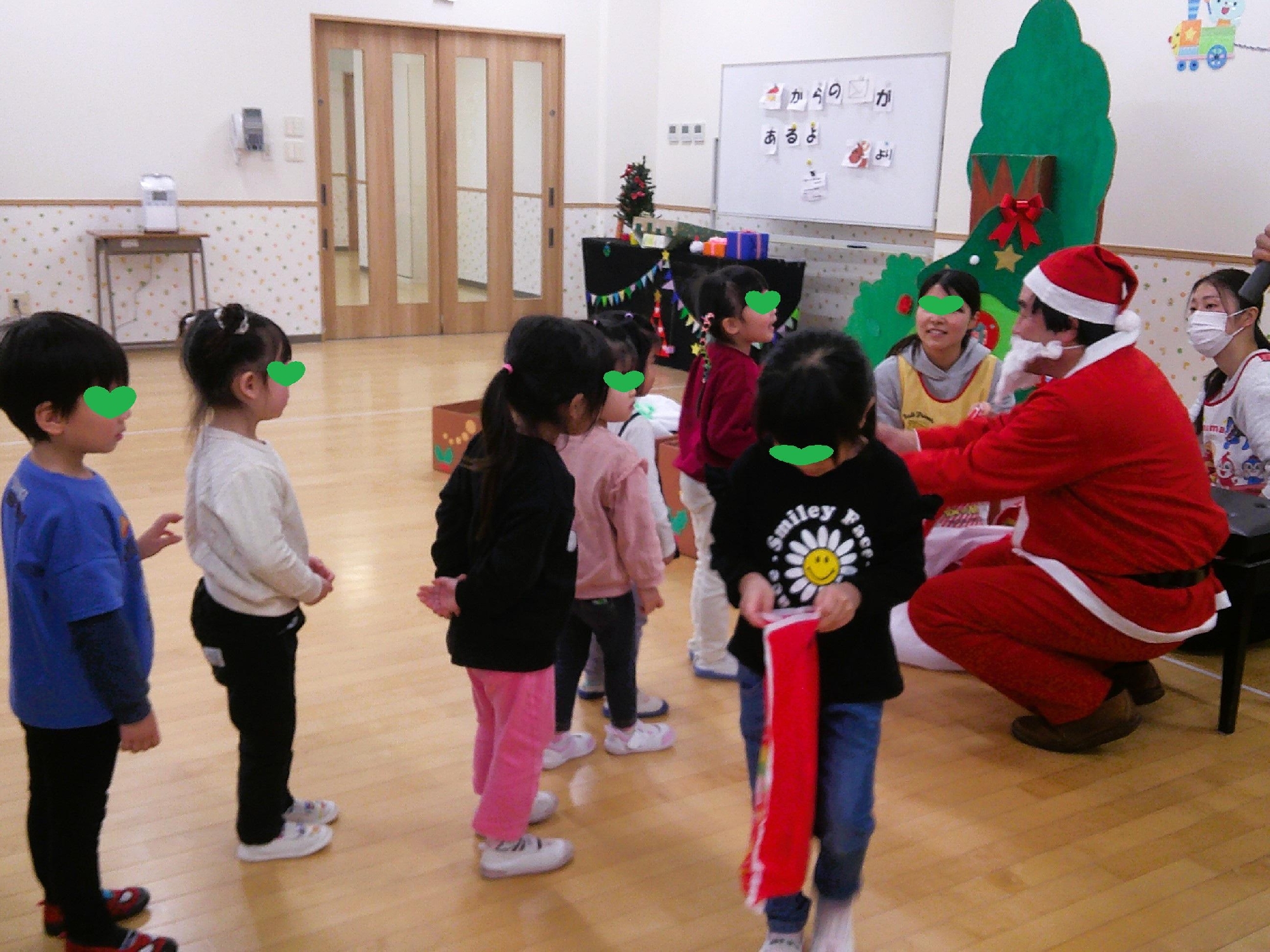 サンタさんよりプレゼントをもらい、嬉しそうな子どもたち🎁