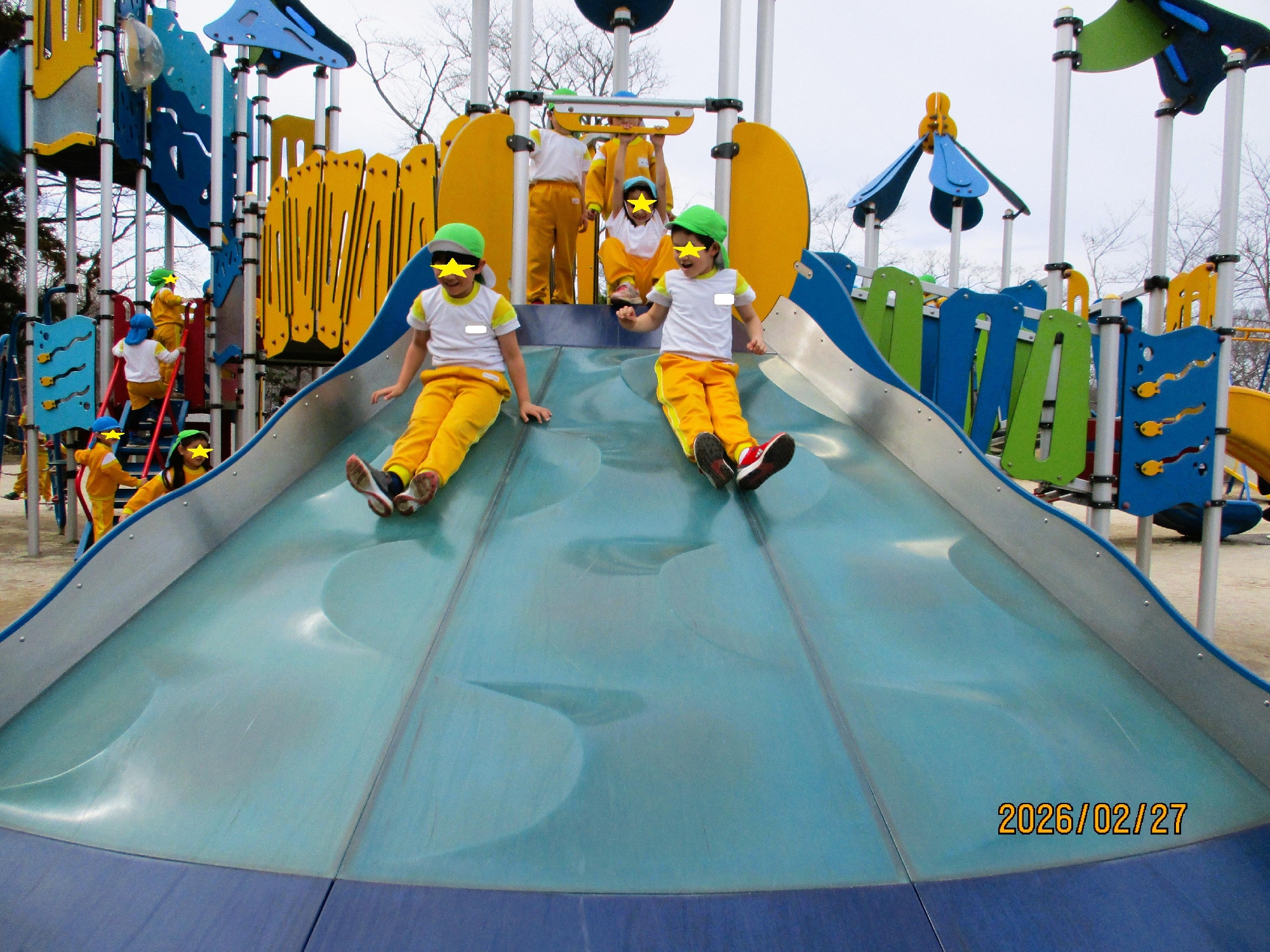 ローラーすべり台やアスレチックで元気いっぱいに遊びました